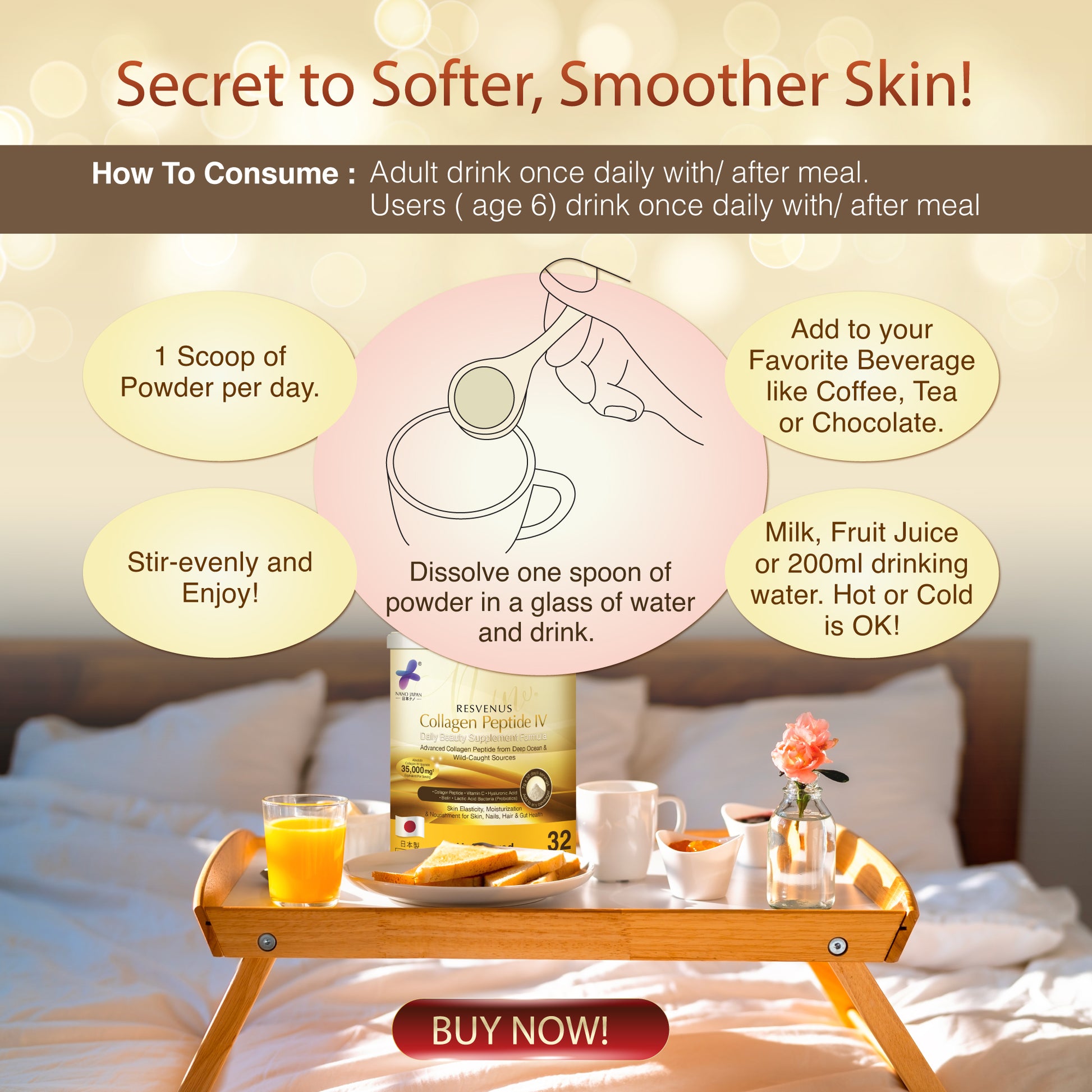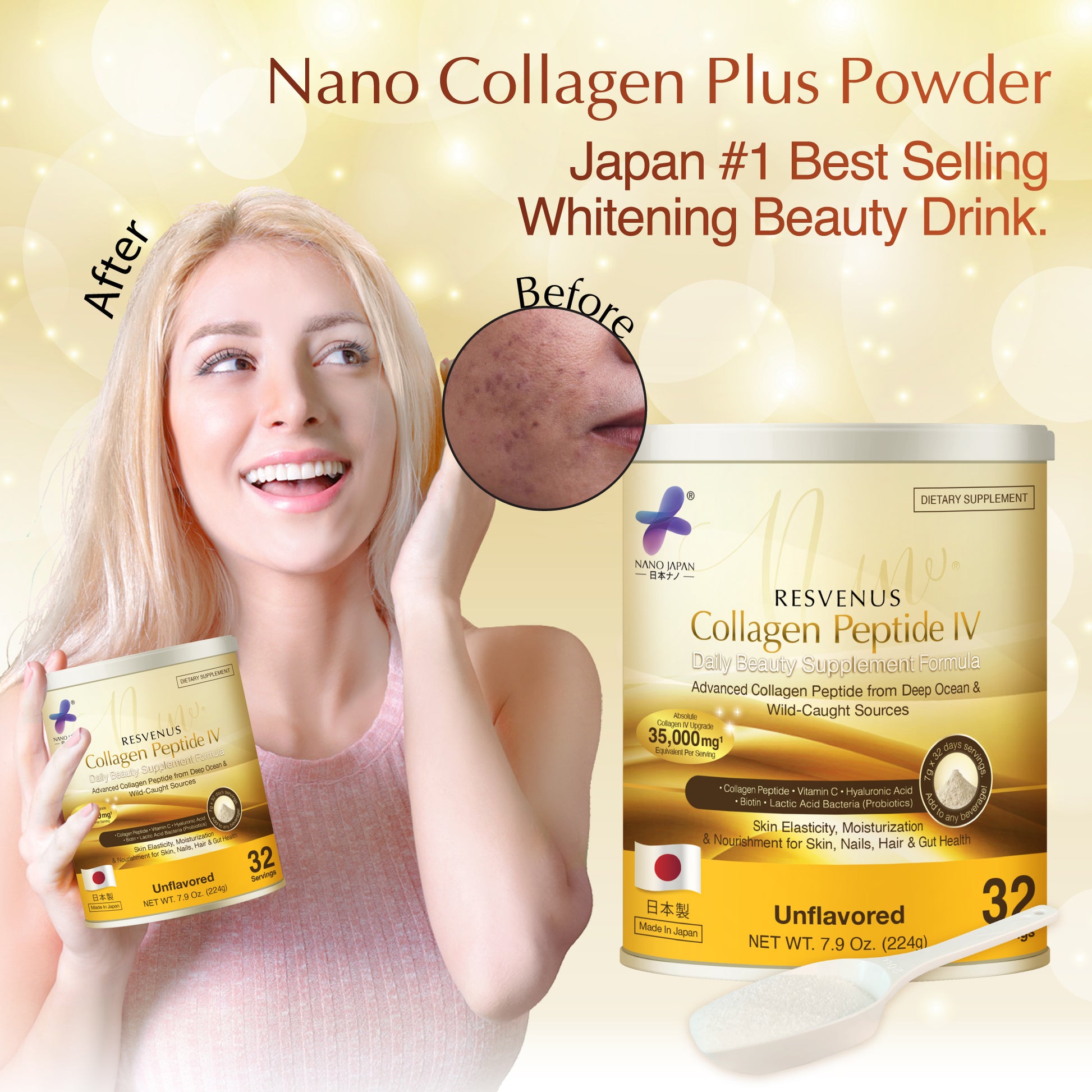 Turn Back Time with Nano Japan Collagen Peptide IV Powder – Your Daily Dose of Youthful Radiance